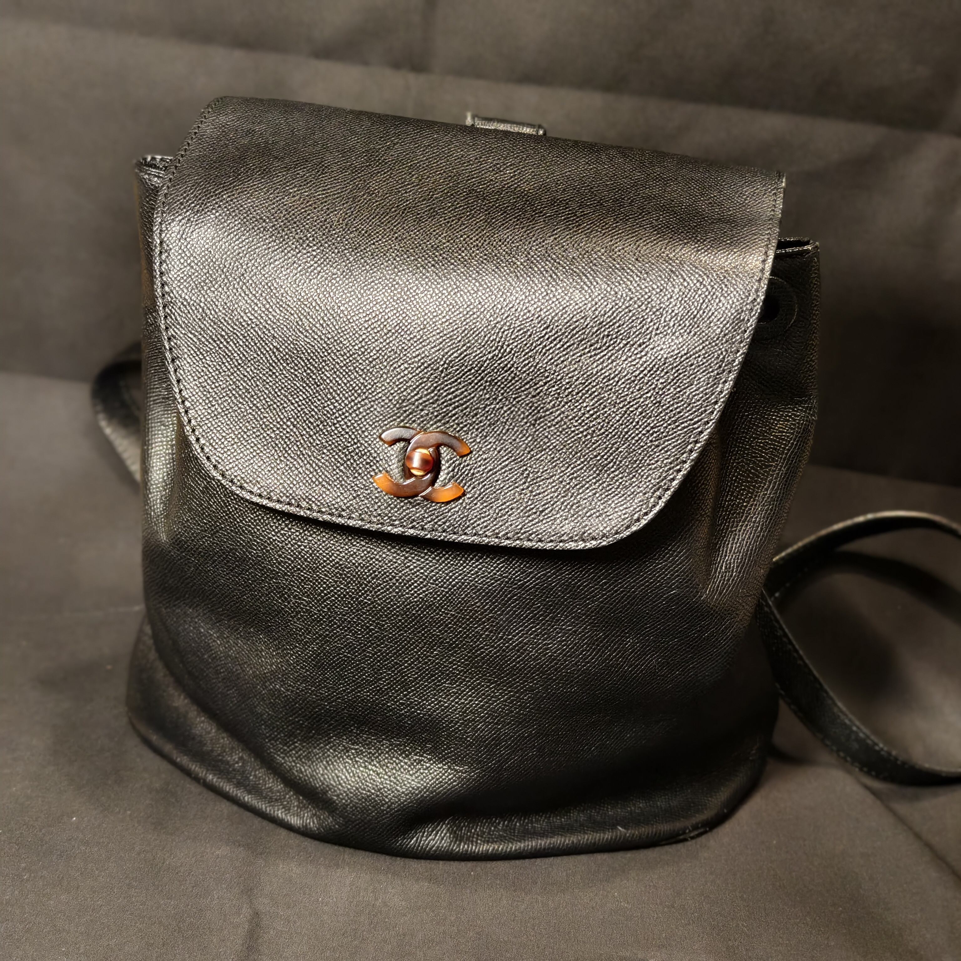 CHANEL リュック べっ甲 カーフスキン ブラック ターンロック 送料無料